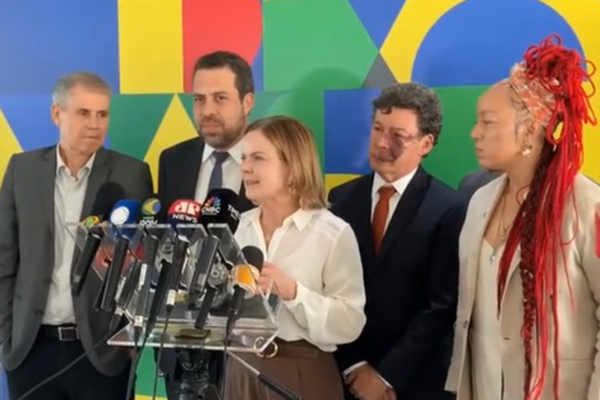 A jornalistas, os ministros Guilherme Boulos (Secretaria-Geral), Gleisi Hoffmann (Relações Institucionais) e Sidônio Palmeira (Secretaria de Comunicação) anunciaram, ao lado de parlamentares aliados, o posicionamento do governo diante do novo texto.